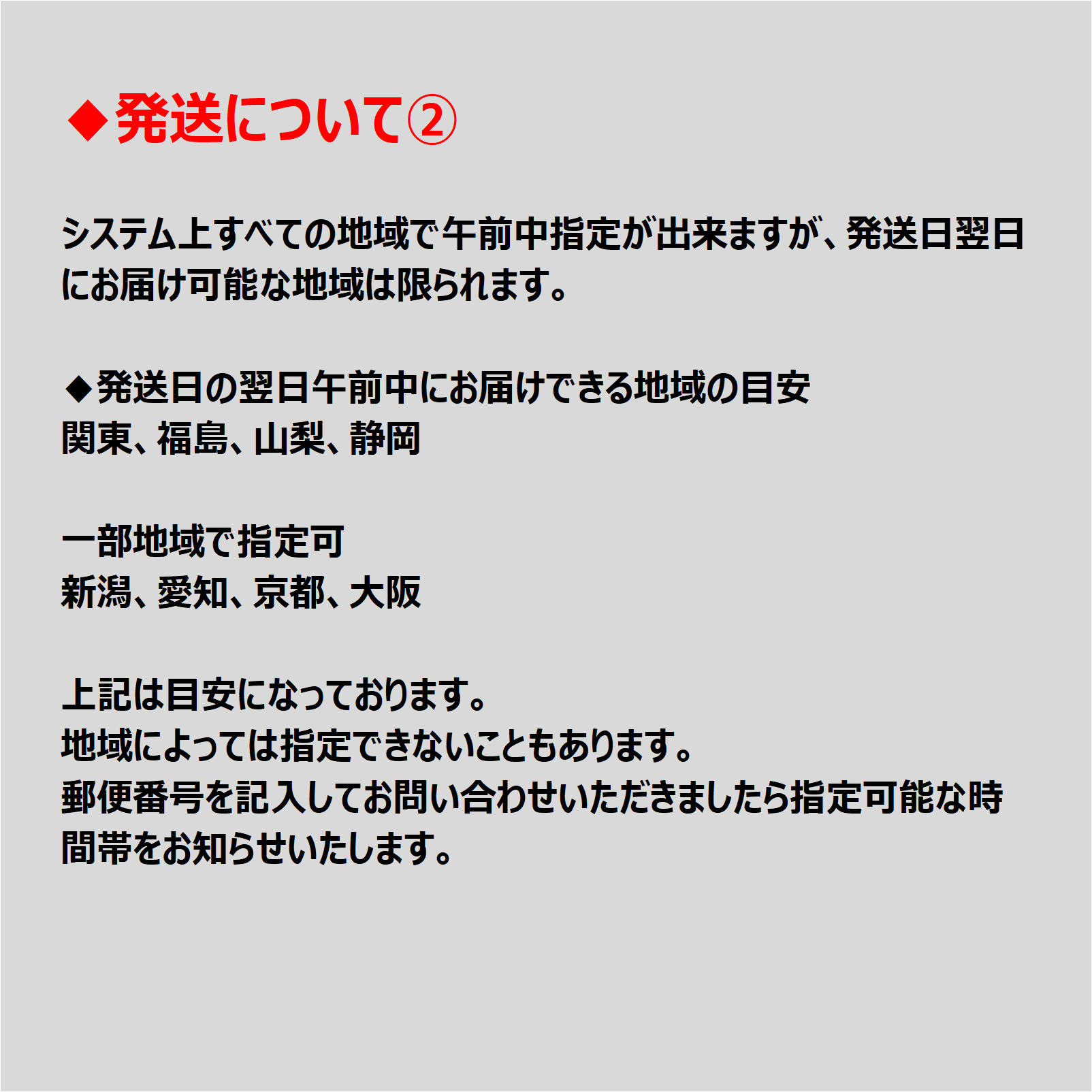 ※特に暑い日はお届けまでに保冷剤が溶けてしまいますので、天気予報を見てなるべく気温の低い日の受取をご指定いただくことをおすすめいたします。