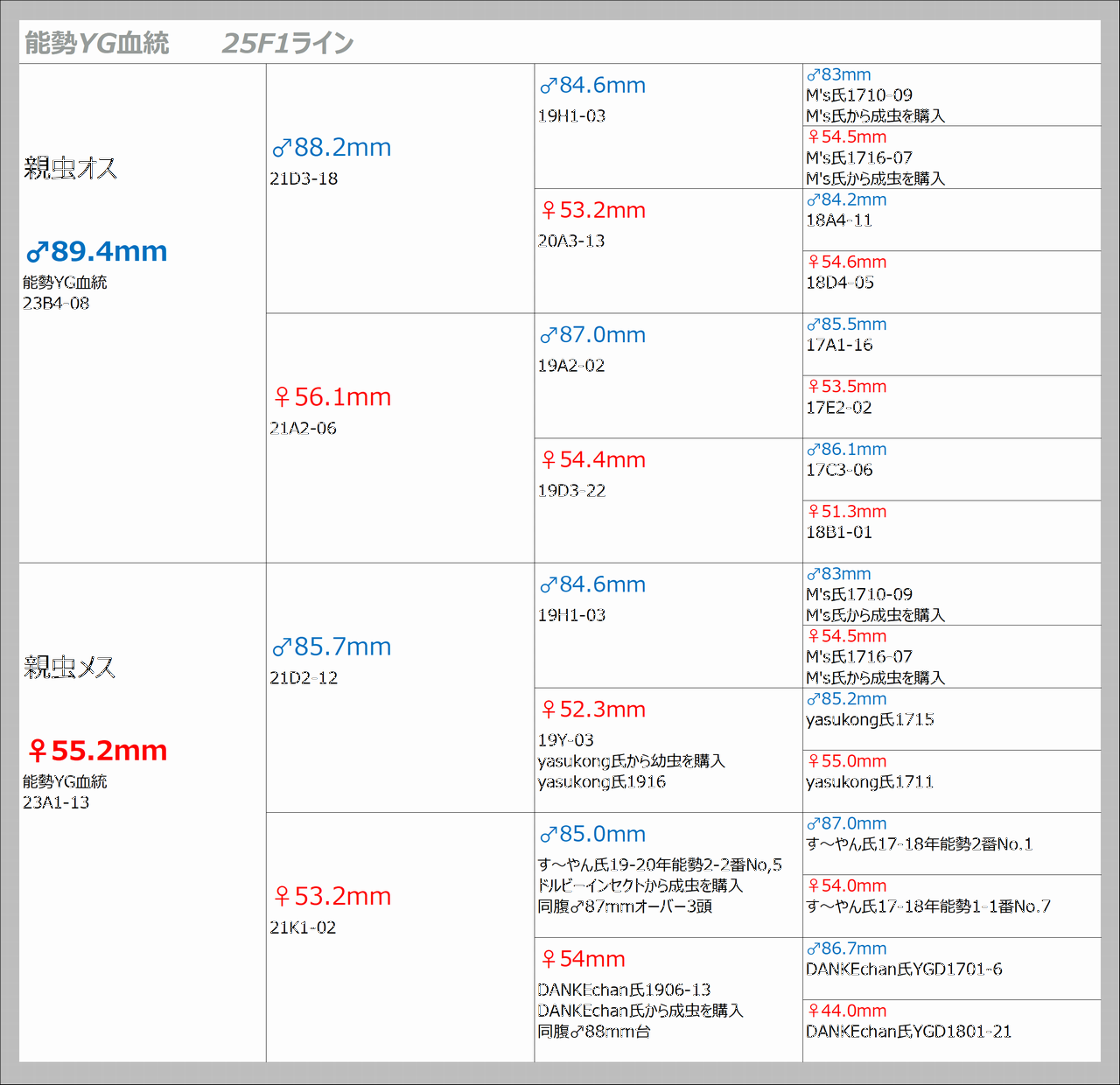 23B4ラインの最大個体は89.4mmです。他に89.2mmと88.6mmも羽化している一番結果の良かったラインです。
