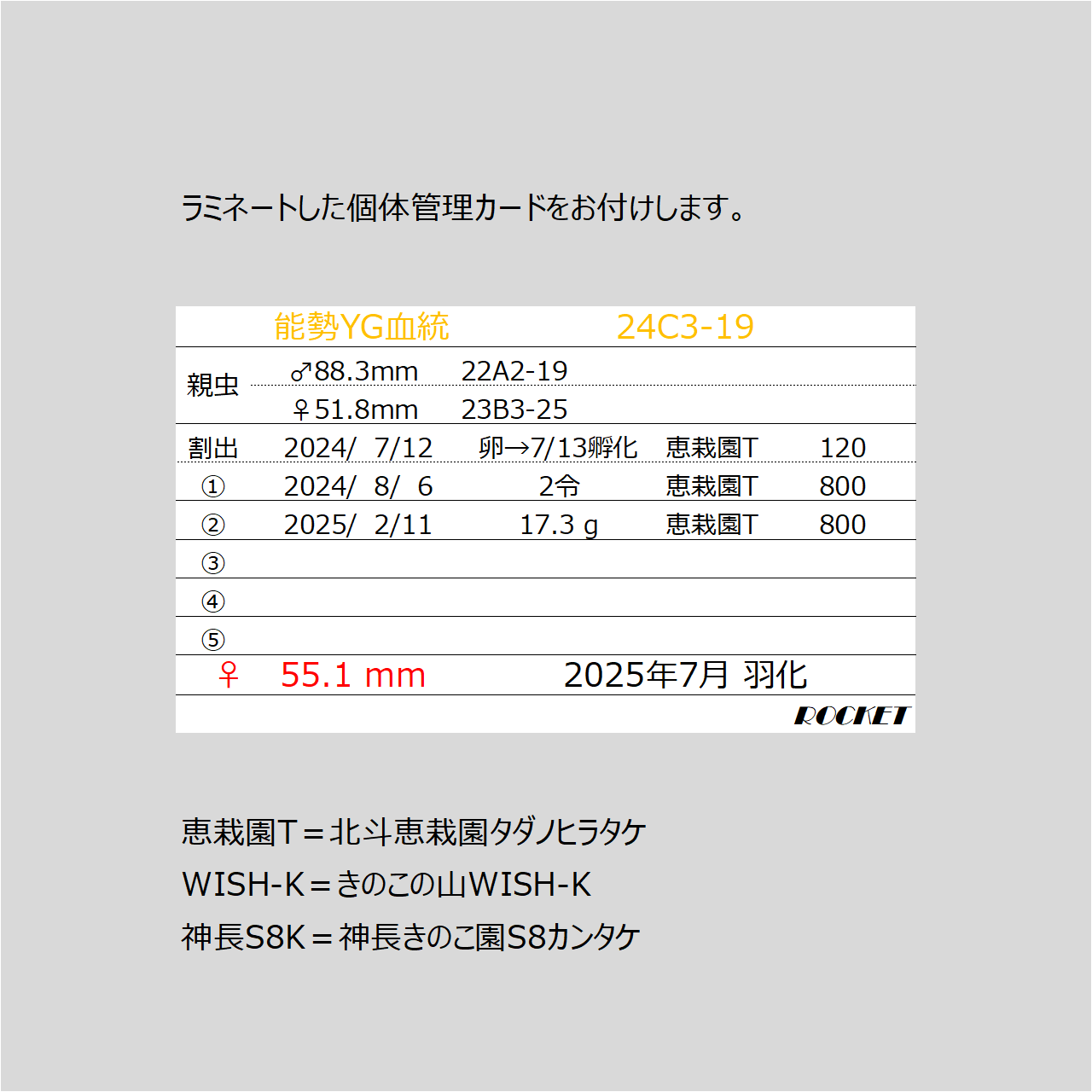 ♀55.1mm(24C3)◆オオクワガタ能勢YG血統◆♀単品
