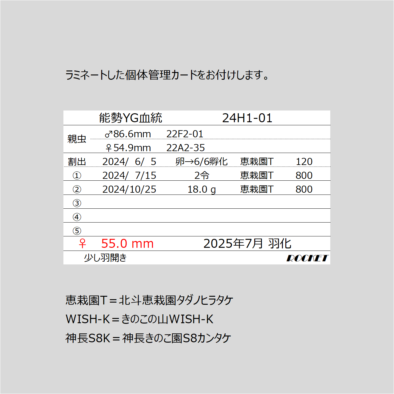 24H1ラインの最大個体は89.3mm(少し羽開き)です。