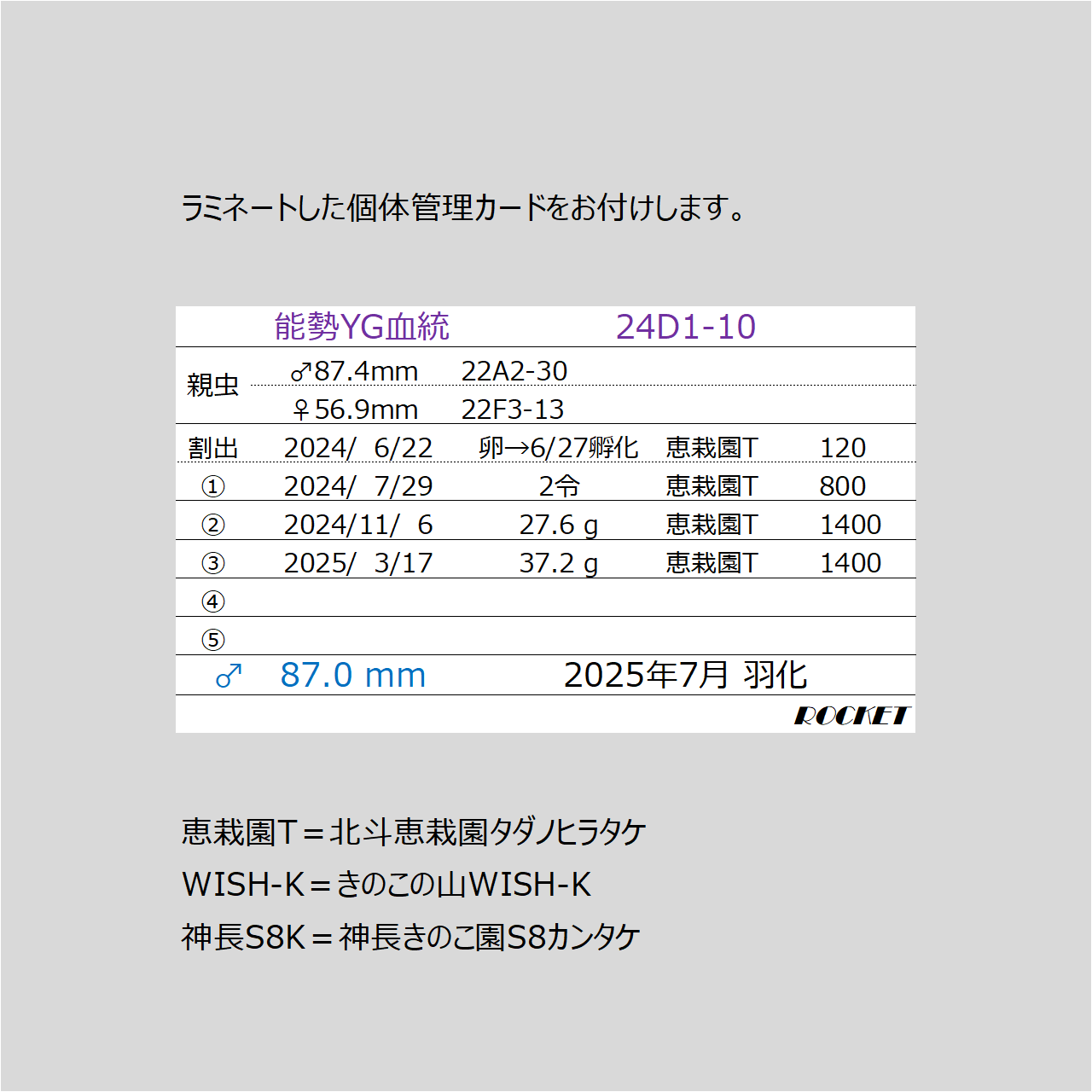♂87.0(24D1)・♀55.0(24D1)・♀55.7(24B3)◆オオクワガタ能勢YG血統◆3頭セット