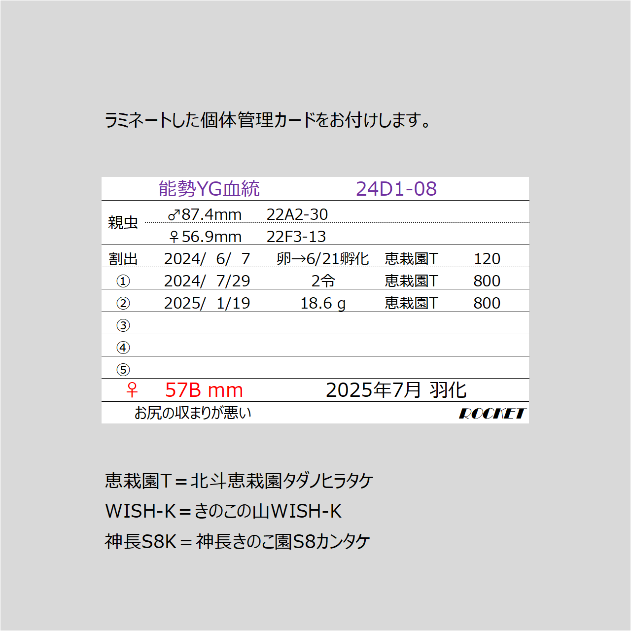 体長:♀57Bmm(24D1-08) ※お尻の収まりが悪い