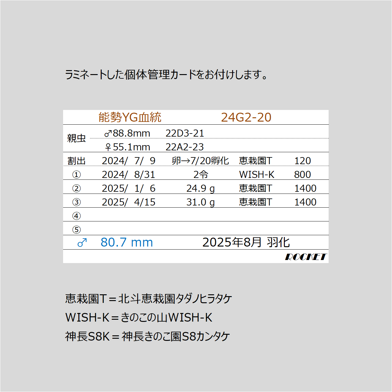 親虫:♂88.8mm×♀55.1mm