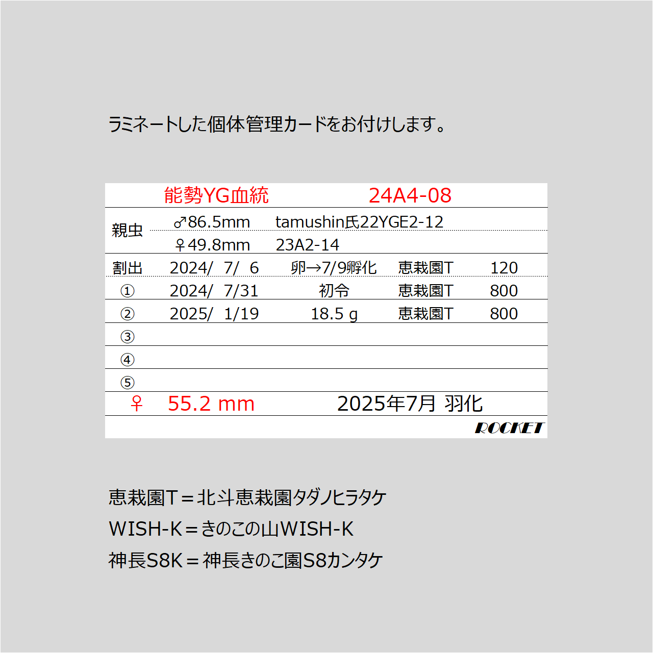 ♀55.2mm(24A4)◆オオクワガタ能勢YG血統◆♀単品◆89mm同腹