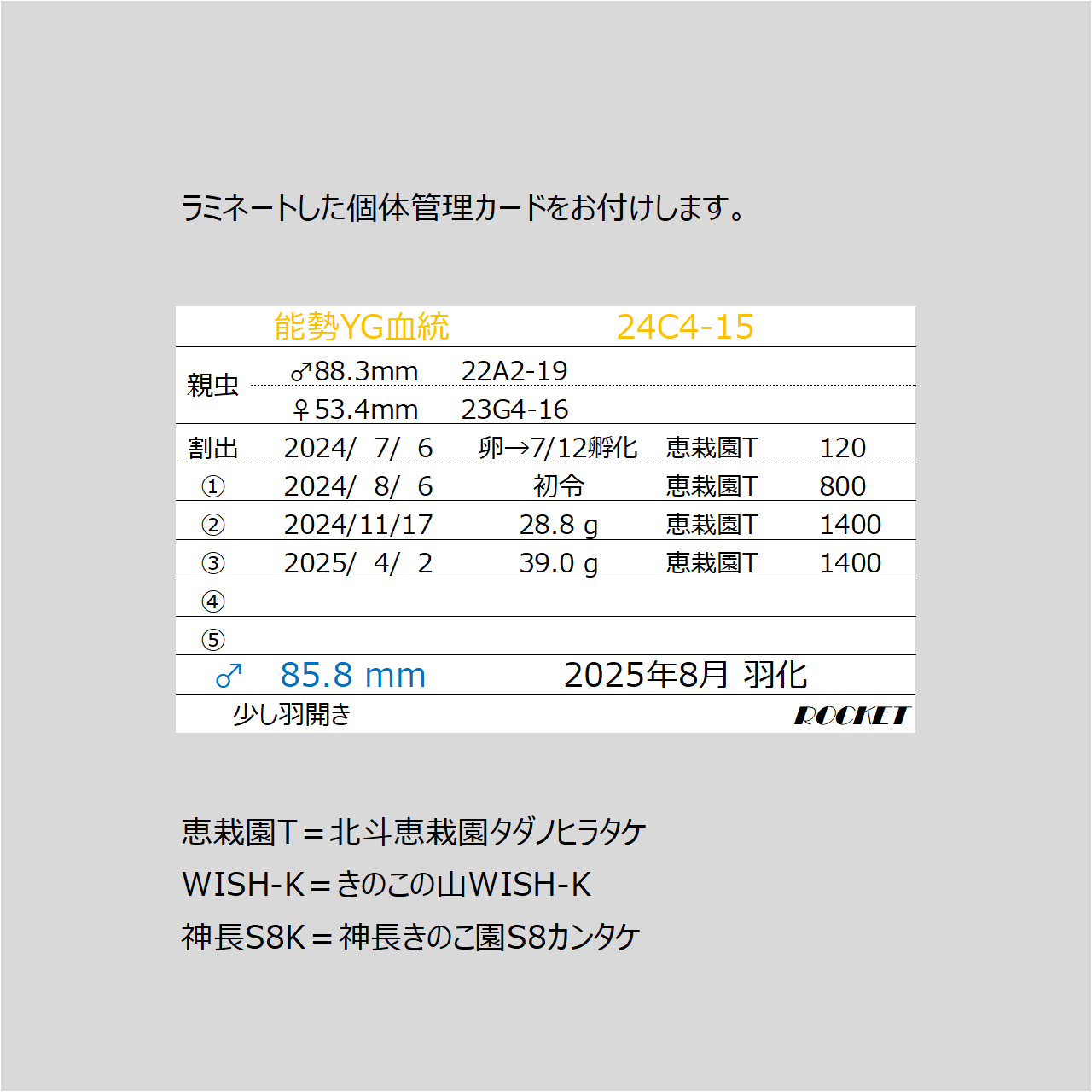 ♂85.8mm(24C4)◆オオクワガタ能勢YG血統◆♂単品