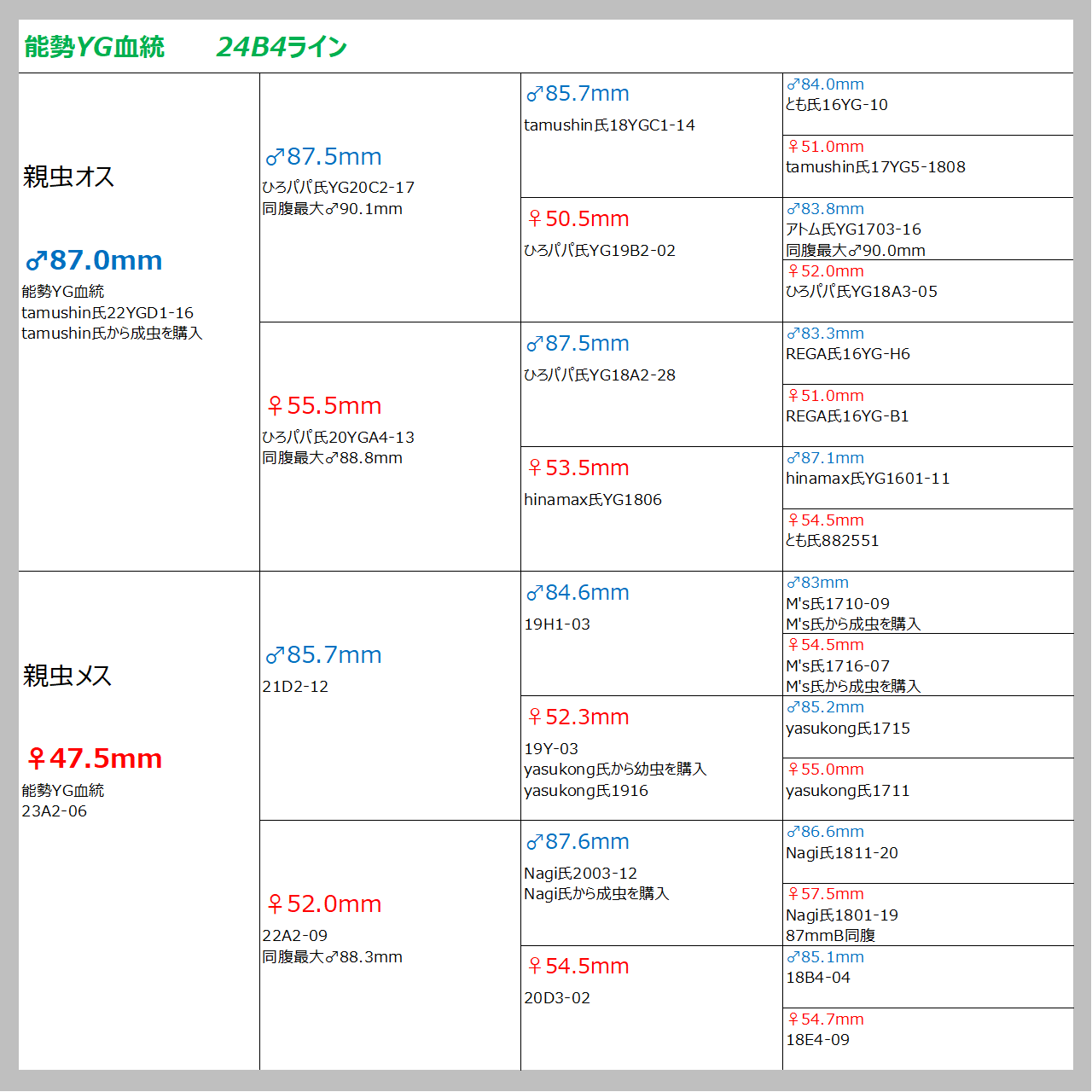 親虫:♂86.6mm×♀50.8mm